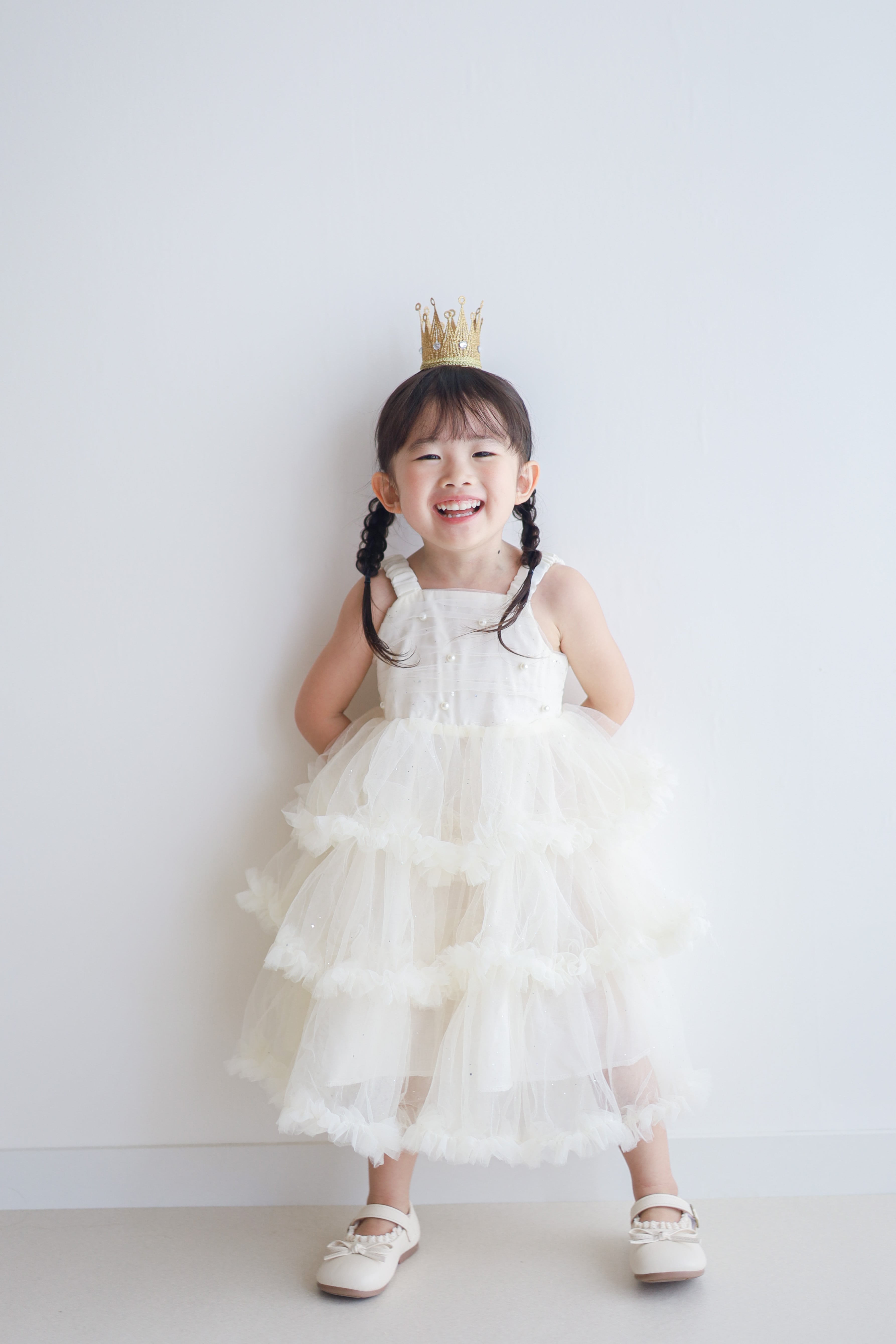 動くたびに揺れるドレスのシルエットは、お子様の素敵な笑顔をより一層引き立てます