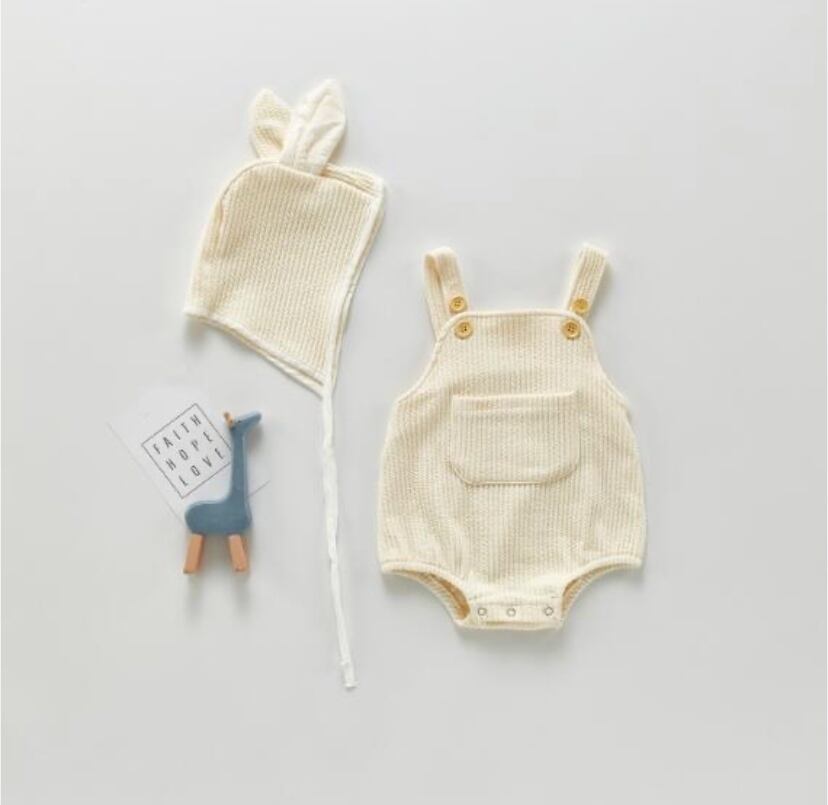 可愛いミミ付き帽子がセットになったロンパース