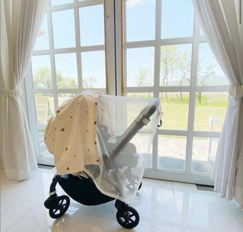 明るい色味で赤ちゃんの様子が見えるレースなので
