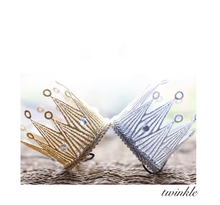 ラインストーンがキラキラと輝く小さ目のゴールドクラウン