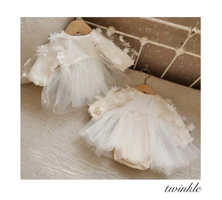予約flower tulle rompers