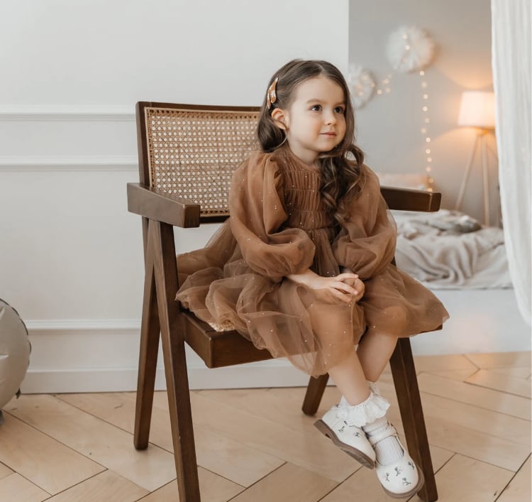 女の子らしさを引き立てる色味で、ボリューム感のあるデザインが特徴です。
