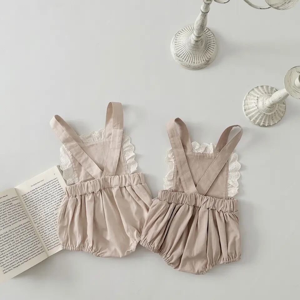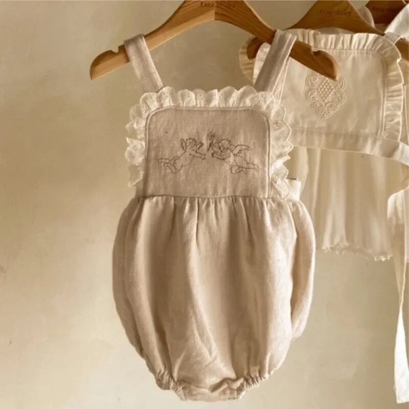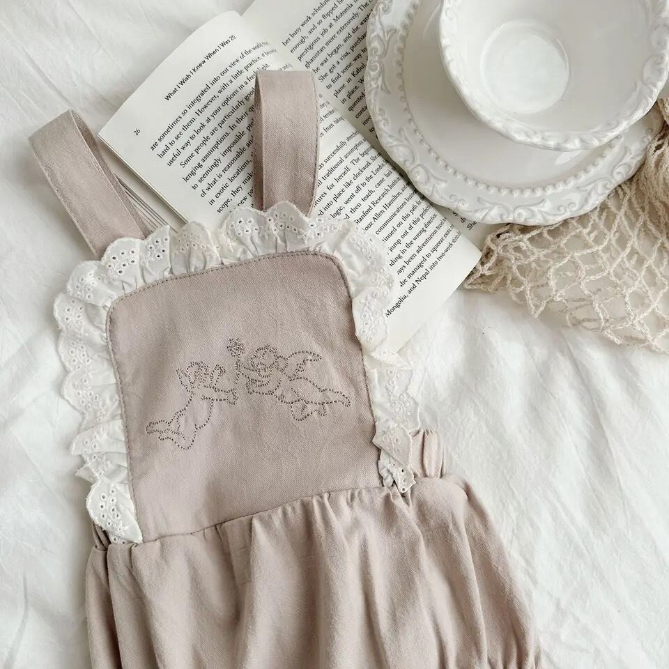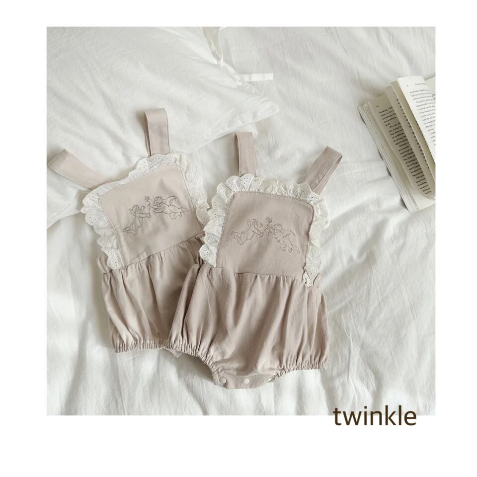 シンプルながら胸元にangelの刺繍をあしらったrompers