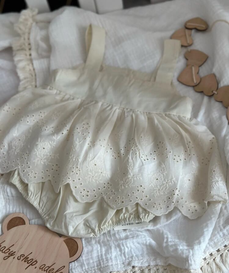 予約natural lace rompers