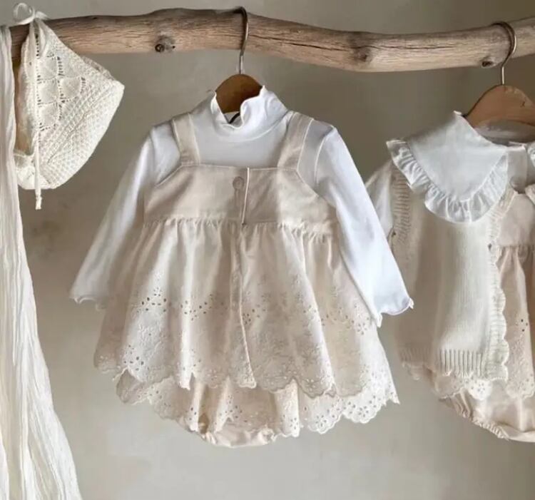 柔らかいレースとナチュラルな素材感が、赤ちゃんの可愛らしさを引き立てます。